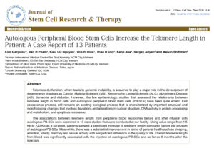 Getting back to the original article, the cells that were studied in regards in telomere length were the leukocytes. Leucocytes are white blood cells. They represent a very important aspect of our immune system and actually have a profound influence on stem cells and their function. Stem cells and their efficiency are intimately tied to our immune system. Most studies that look at telomeres typically assess the cells of the immune system. The younger our immune system typically the healthier we are. Failures of our immune system lead to numerous diseases. In the paper here is a quote from the authors “We can only speculate that t phenomenon of increased telomeres may have been due to activation of telomerase through series of signaling pathways triggered by stem cells itself”.