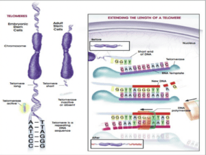 Short telomeres are associated with many different diseases ranging from cancer, osteoarthritis, diabetes, and many neurological conditions. Some of these neurological conditions may include Alzheimer’s Disease which is one of the scourges of modern society. The following diagram shows the difference in size between an embryonic cell and adult cell as far as the DNA and its telomere is concerned. Embryonic cells have much higher regenerative capacity. The fact that the embryonic cells have longer telomeres contributes to their high regenerative capacity. However, embryonic cells have many pitfalls which limits their regenerative potential. Furthermore, there are ethical issues associated with them.