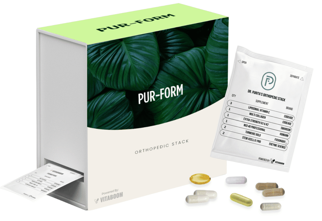 Dr. Purita’s Orthopedic Stack combines cutting-edge supplements that work synergistically to support joint function, promote recovery, and maintain mobility at any age.